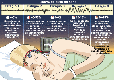 Nosso sono basicamente é dividido de 4 a 6 ciclos que se repetem, contando as mesmas fases. Em cada um desses ciclos, ocorre a fase chamada Fase REM (Rapid Eye Movement – Movimento Rápido dos Olhos) e é exatamente nessa fase que os sonhos são mais intensos.